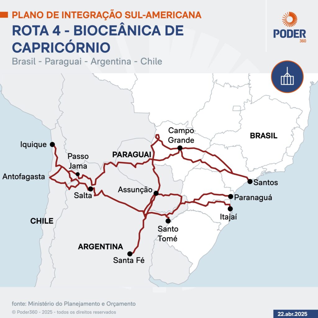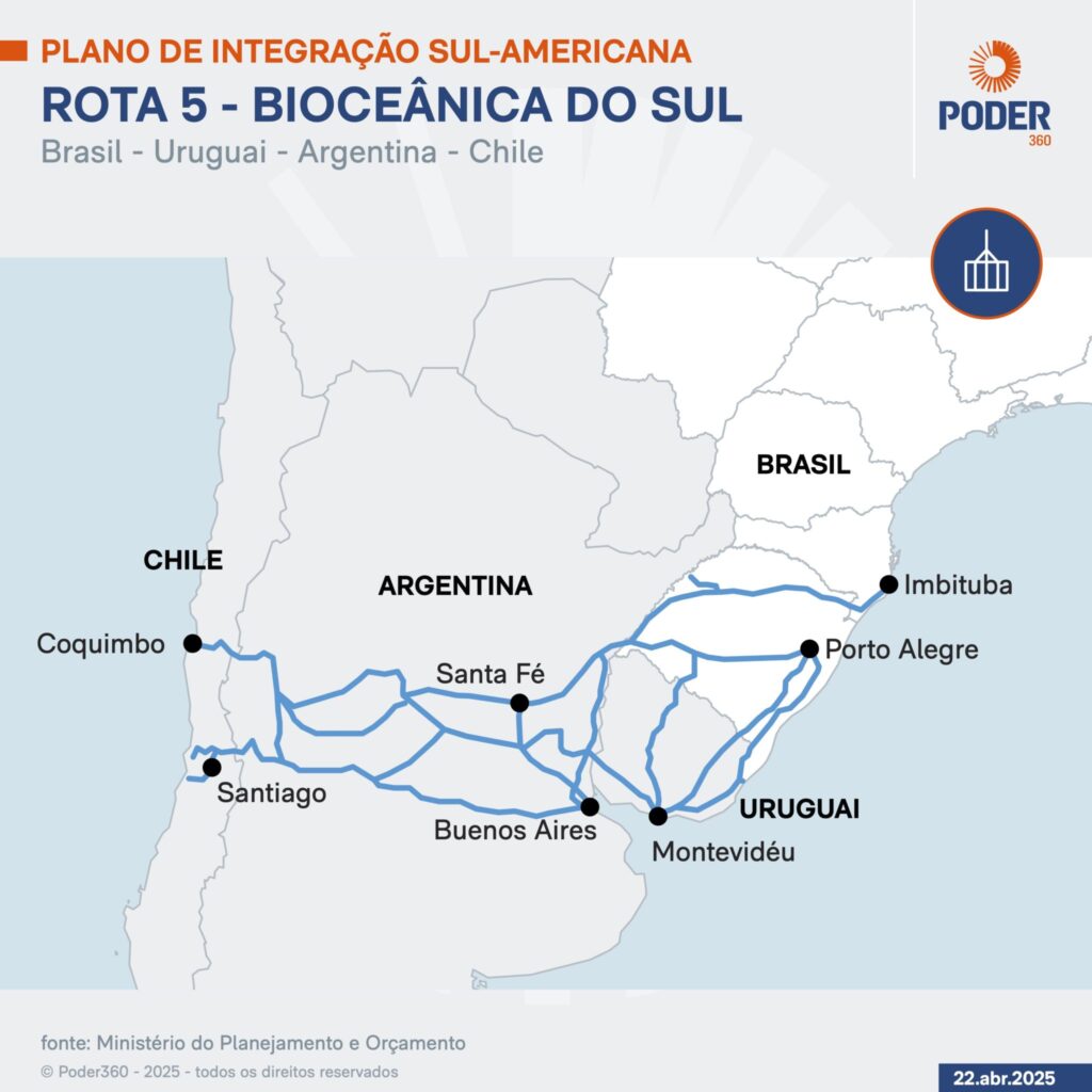 Em visita oficial ao Brasil, o presidente do Chile, Gabriel Boric (Frente Ampla), tem entre as prioridades a Rota Bioceânica de Capricórnio, que conectará o sul do Brasil ao norte chileno por meio de uma estrada de mais de 2.400 km. A iniciativa, que também atravessará o Paraguai e a Argentina, deve reduzir custos logísticos, ampliar o comércio regional e aproximar a América do Sul da Ásia. O projeto deve ser concluído em 2026.