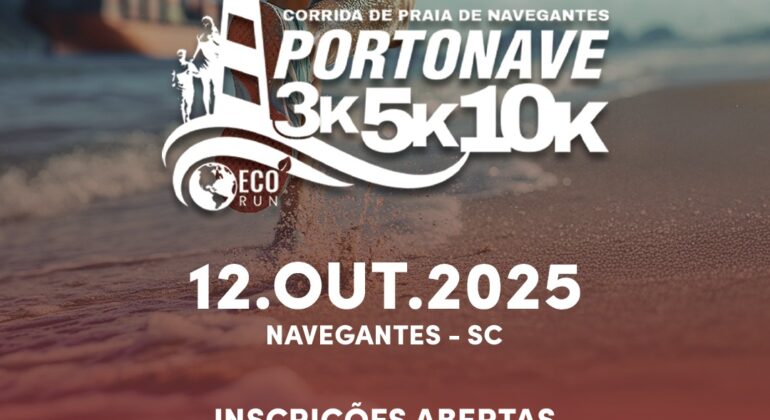 A Corrida de Praia de Navegantes – Portonave Eco é uma tradição que une comunidade, esporte e sustentabilidade à beira-mar. Neste ano, pela primeira vez, o evento será realizado no mês de aniversário do Terminal, em outubro. No dia 12/10, um domingo, a largada está marcada para as 7h, na praia – altura da rua José Gaya, no bairro São Pedro.