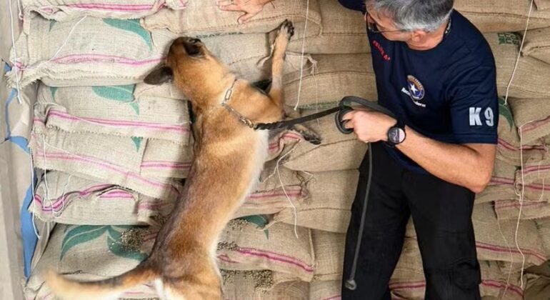 O material foi encontrado com a ajuda de cães farejadores. A droga estava dentro de sacos de café. Após encontrar o material, os agentes fizeram testes rápidos e verificaram que se tratava de entorpecentes.
