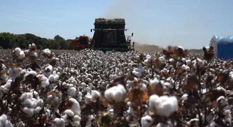 A produção de pluma de algodão também foi revisada para baixo. A nova estimativa aponta volume de 2,56 milhões de toneladas na safra 2025/26, uma redução de 15,16% em comparação às 3,01 milhões de toneladas registradas no ciclo 2024/25.