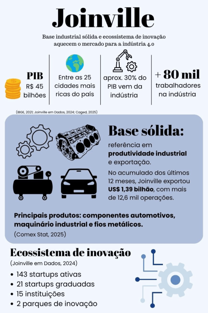 Para Dinor Martins Júnior, especialista em educação do Senai, além da forte base industrial, Joinville conta com instituições estratégicas e um ecossistema de inovação que impulsionam a adoção de tecnologias da indústria 4.0.