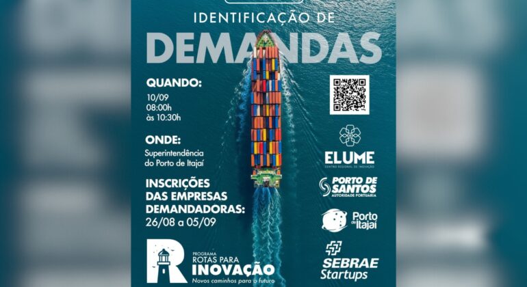 A iniciativa é promovida pelo Sebrae/SC, por meio do Sebrae Startups, em parceria com o Porto de Itajaí e o Elume – Centro Regional de Inovação. O objetivo é aproximar startups, empreendedores e centros de pesquisa do setor portuário e logístico, estimulando a criação de soluções inovadoras para os desafios da cadeia produtiva da região.