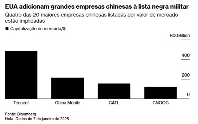 Na segunda-feira, o governo Biden incluiu a Tencent Holdings Ltd., maior publicadora de jogos do mundo, e a Contemporary Amperex Technology Co. Ltd. (CATL), um importante fornecedor de baterias para a Tesla Inc., em sua lista de “empresas militares chinesas” — firmas que, segundo os EUA, trabalham direta ou indiretamente com o Exército de Libertação Popular (PLA) ou contribuem significativamente para a base industrial da China.