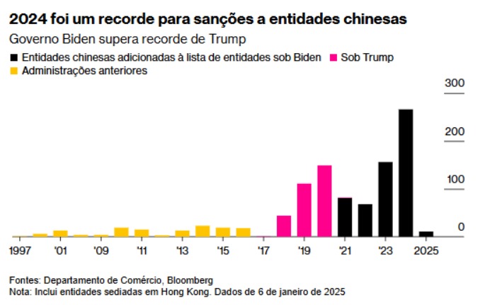 A China deixou claro que está preparada para desafiar os EUA em futuras disputas comerciais. Além de sua proibição de exportação de minerais críticos, como germânio e gálio, Pequim anunciou na semana passada planos para controles mais rigorosos sobre o envio de tecnologias usadas em materiais de baterias. Também está colocando mais empresas americanas em sua Lista de Entidades Não Confiáveis, adotando uma abordagem semelhante à dos EUA.