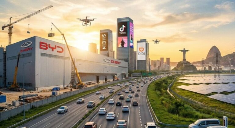 As gigantes chinesas intensificaram sua presença no Brasil com uma estratégia que vai além da simples exportação de produtos. O movimento envolve instalação de fábricas, expansão no mercado de carros elétricos, avanço em aplicativos de mobilidade e entregas e fortalecimento em energia e infraestrutura. A meta é clara: operar localmente, ganhar escala e garantir influência econômica duradoura nas próximas décadas.