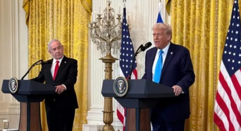 “O presidente Trump está levando isso a um nível muito mais alto”, disse o primeiro-ministro israelense. “Ele vê um diferente – ele vê um futuro diferente para aquele pedaço de terra que tem sido o foco de tanto terrorismo, tantos, tantos ataques contra nós, tantos, tantos julgamentos e tantas tribulações. Ele tem uma ideia diferente, e acho que vale a pena prestar atenção nisso.”