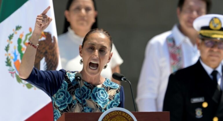 Citando números oficiais americanos, a presidente também destacou que, graças às apreensões realizadas no México, a entrada de fentanil nos Estados Unidos pela fronteira de 3.100 km foi reduzida em 50% entre outubro de 2024 e janeiro de 2025.