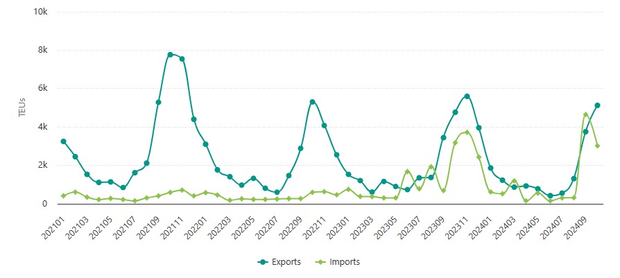 Porto do Pecém | Exportações e Importações | Jan 2021 – Out 2024 | TEUs