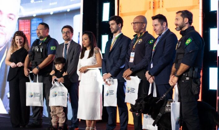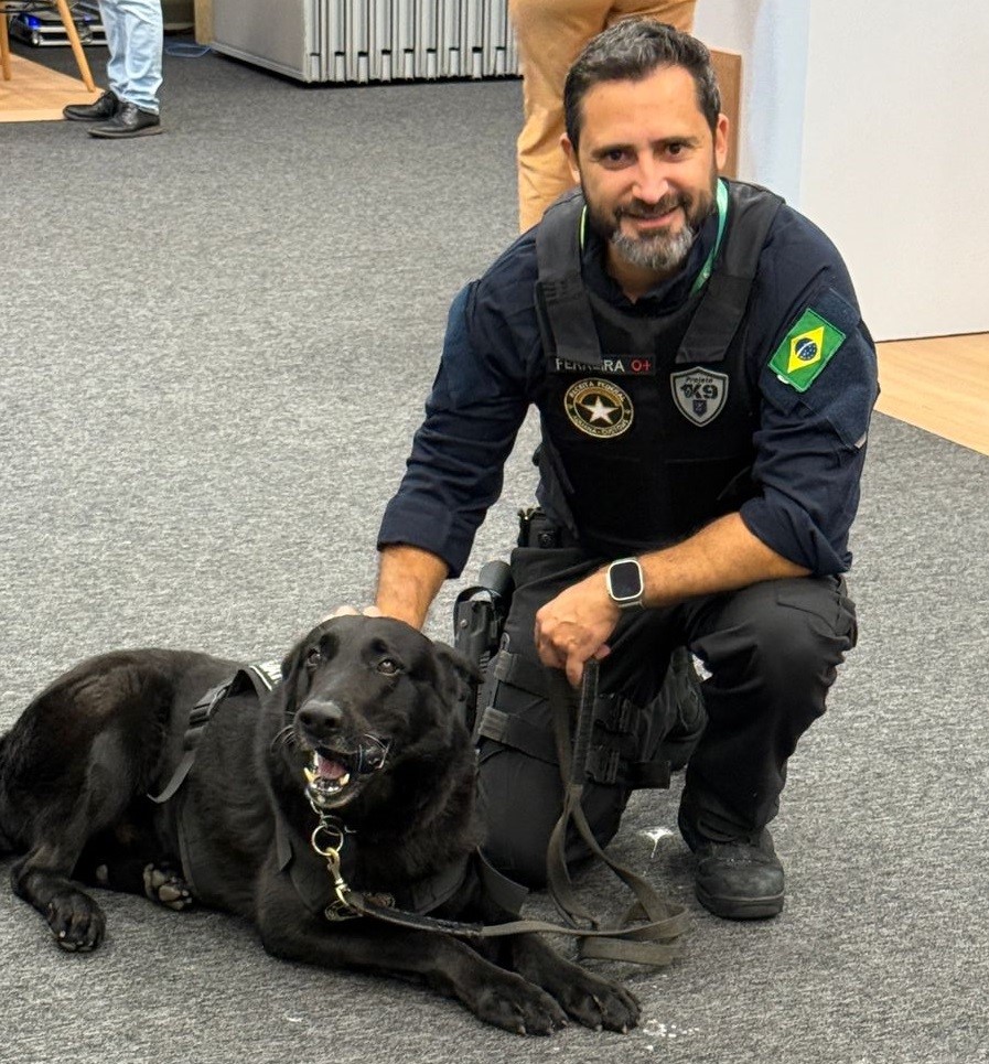 O Global Trade Summit 2025 encerrou nesta sexta-feira (23) em grande estilo. Destaque para a participação dos profissionais que atuam na Aduana e no programa Aeroporto: Área Restrita, que mostra o dia a dia da Receita Federal nos aeroportos de Viracopos e Guarulhos, em São Paulo. A equipe subiu ao palco acompanhada do K9 Dark e proporcionou ao público uma imersão real nas atividades realizadas diariamente nas áreas restritas da fiscalização aeroportuária. Os visitantes tiveram a oportunidade de conhecer de perto a estrutura de enfrentamento à fraude, o combate ao contrabando e os procedimentos de segurança que tornam as ações mais rigorosas e eficientes. “Hoje o nosso principal desafio é a alta demanda para o pouco número de servidores. Então a gente tem que investir em tecnologia. Análise de risco e tudo o que for possível. A tecnologia é o que ajuda e nos faz ter um trabalho eficiente e eficaz. Além dos nossos K9, não apenas o Dark. A gente costuma dizer que nós erramos, mas eles nunca,” ressalta Rodrigo Quaresma, analista tributário da Receita Federal do Brasil.
