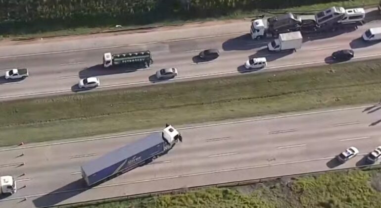 A Secretaria de Segurança Pública (SSP) confirmou, em nota, que o chamado partiu do próprio motorista e que a ocorrência segue em andamento. Como medida preventiva, houve interdição total das pistas no trecho afetado, para evitar riscos aos usuários e profissionais que atuam na operação.