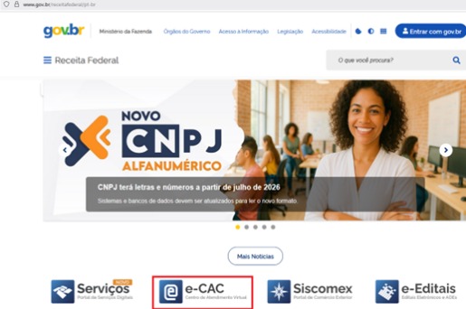 Passo 1. Acessar o portal e-CAC no site da Receita Federal do Brasil.