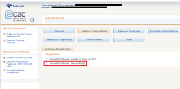 Passo 3. Na próxima tela, selecionar a opção “Consulta Pendências – Situação Fiscal”.