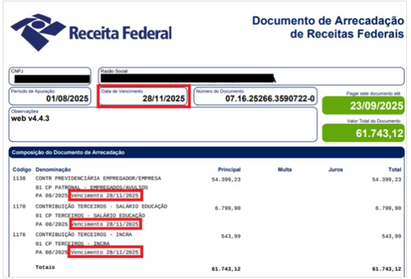 – Vencimentos em setembro de 2025: Prorrogados para o último dia útil de novembro de 2025.