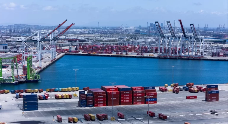 A bordo do ONE Modern, com 302 metros de comprimento (990 pés), propriedade da Ocean Network Express do Japão, há até 7.000 contêineres cheios de produtos como roupas, móveis e peças automotivas – majoritariamente fabricados na China – destinados aos EUA.