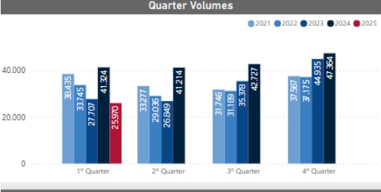 O preço médio do produto também subiu de forma significativa. Em março de 2025, o valor negociado foi de US$ 12.745,00 por tonelada, o que equivale a uma valorização de 52,8% em comparação ao preço médio de US$ 8.341,70 registrado no mesmo mês de 2024.