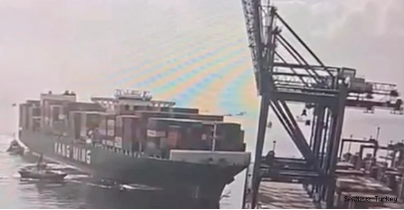 Momentos de horror no porto de Evyapport: Navio porta-contêineres gigante chamado YM Witness colidiu contra pórticos – ACIDENTES – SeaNews