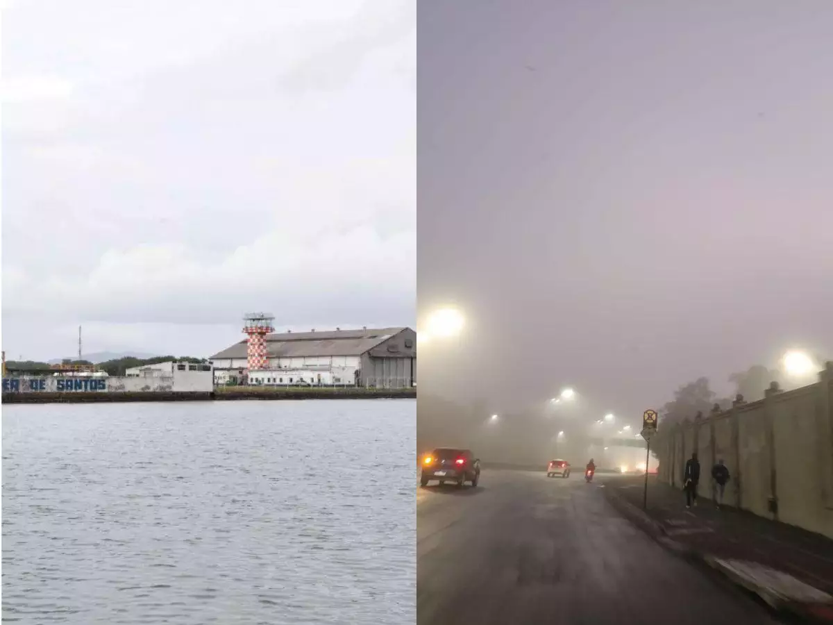 A neblina forte na manhã desta quinta-feira (7) reduziu a visibilidade no canal do Porto de Santos, suspendendo as manobras de navios cargueiros por mais de três horas
