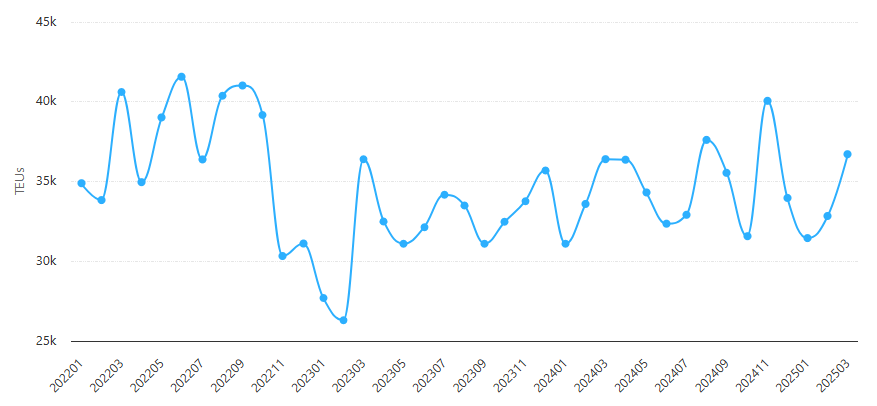 Exportações Brasileiras para os Estados Unidos | Jan 2022 – Mar 2025 | TEUs