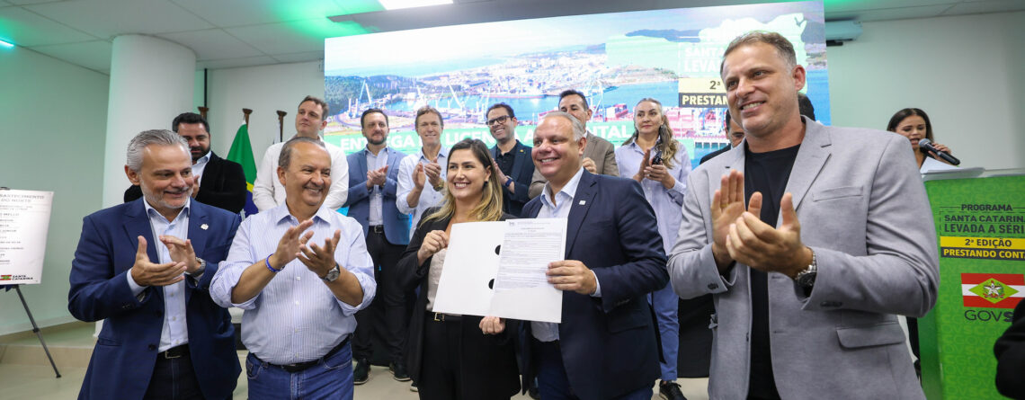 O governador de Santa Catarina, Jorginho Mello, e a presidente do Instituto do Meio Ambiente do estado, Sheila Meirelles, entregaram na última quinta-feira (10) a Licença Ambiental de Instalação (LAI) para a obra de derrocagem (retirada de rochas submersas) e dragagem do início do Cais 1 do Porto de Imbituba.