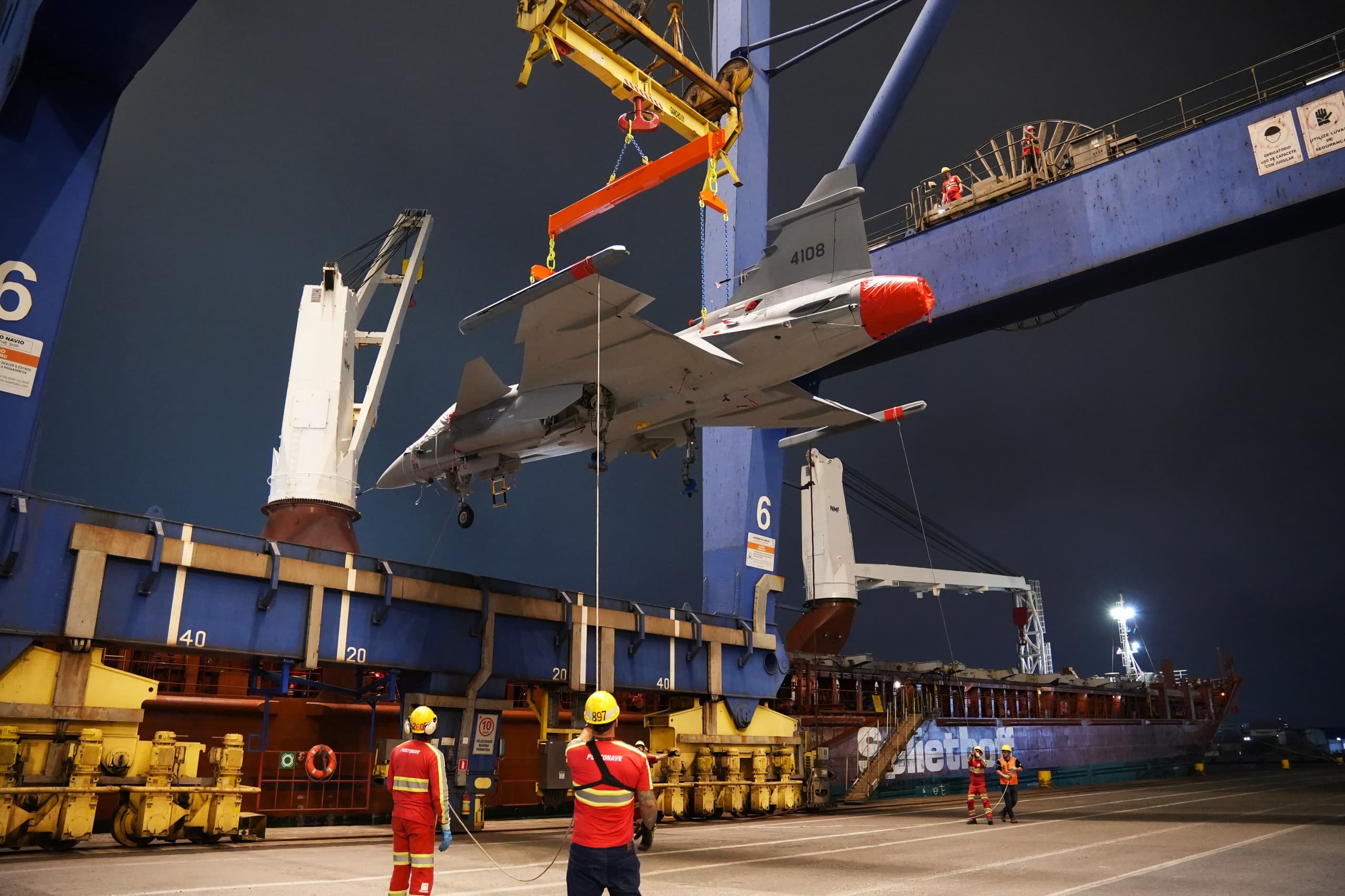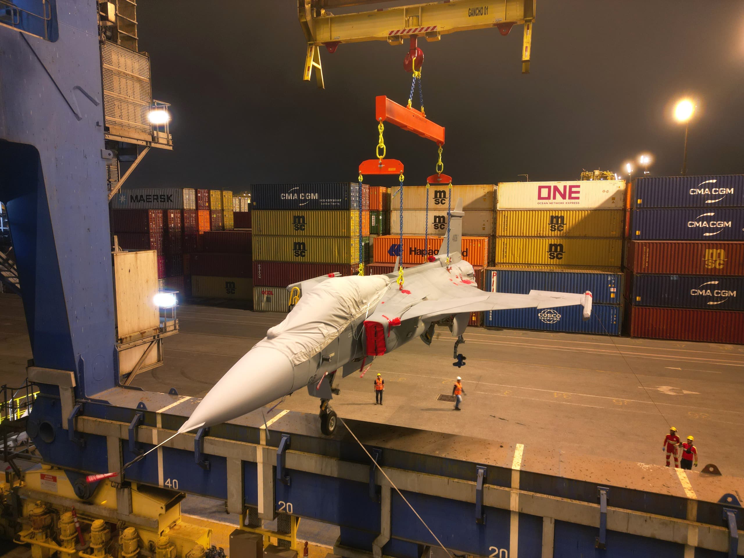 Portonave movimenta caça F-39 Gripen da Força Aérea Brasileira