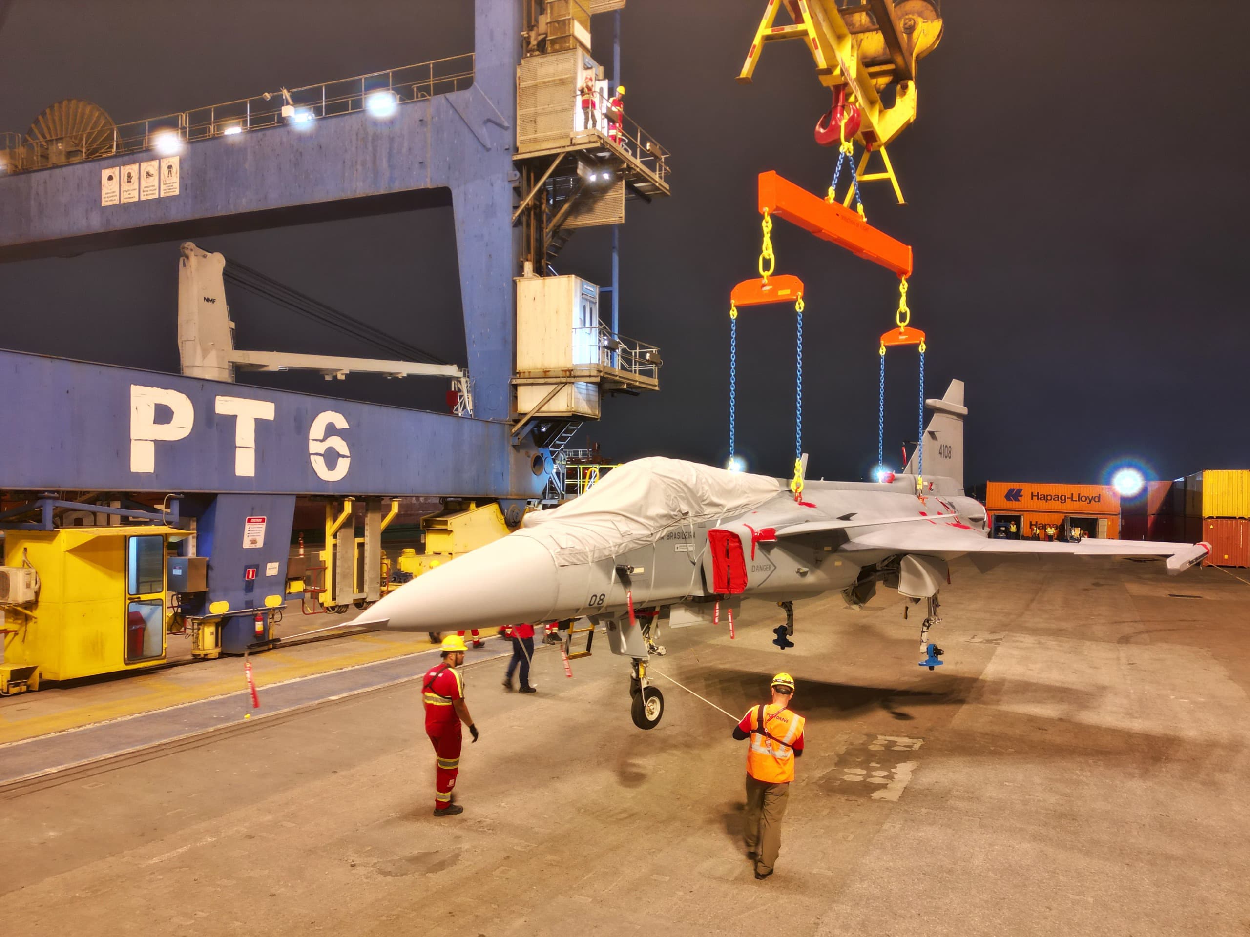 Com segurança e excelência na operação, o Terminal Portuário mais eficiente em produtividade de navio do país recebe mais uma aeronave do Programa Gripen Brasileiro