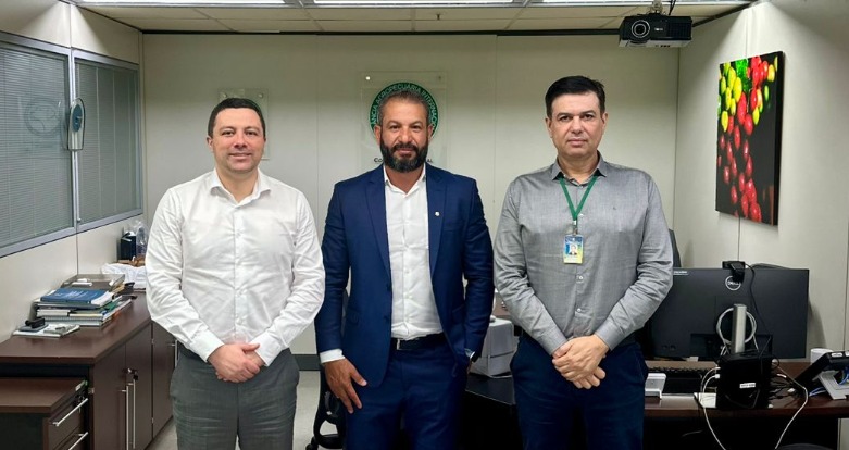 O presidente do SDA foi recebido pelo Coordenação Fiscalização do Trânsito Regular – CFTR, José Marcelo Nogueira Maziero e pelo Coordenador Geral do Sistema de Vigilância Agropecuária Internacional – CGVIGIAGRO, Cleverson Freitas.