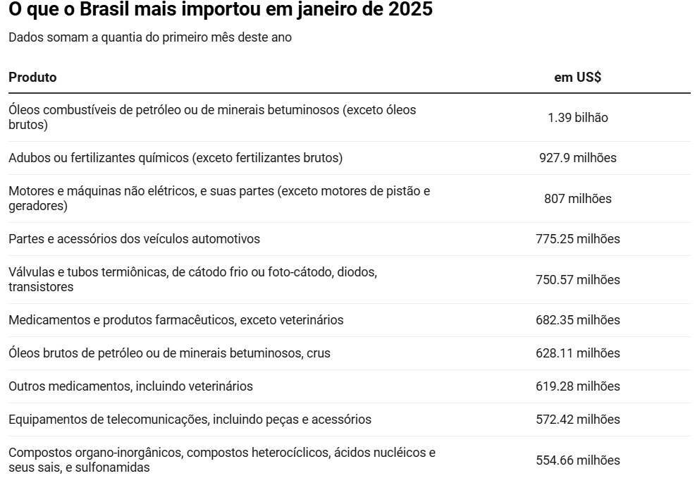 Confira a seguir o ranking dos 10 produtos que o Brasil mais importa.