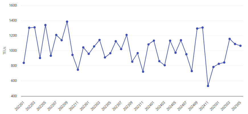 Exportações de couro aos EUA – Jan 2022 a Maio de 2025 – TEU