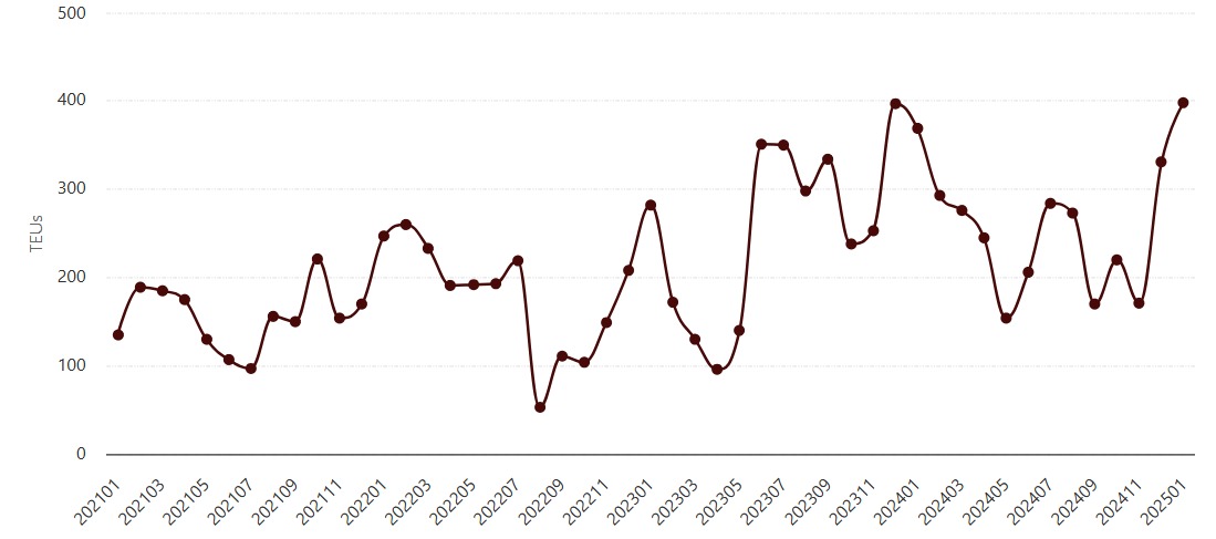 Exportações Brasileras de Calçados | 2021 – 2025 | TEUs