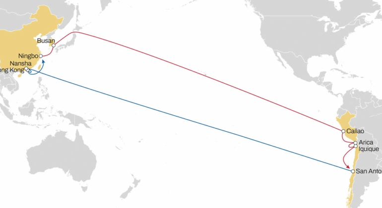 A instalação permite que cargas da América do Sul viajem diretamente para a Ásia, em vez de precisar passar pela América Central ou do Norte, reduzindo o tempo de transporte de 35 para 23 dias.