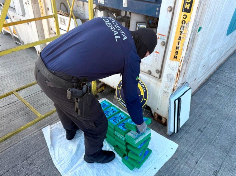 A droga foi localizada em tabletes escondidos no interior de caixas de mamão, que integravam uma carga de aproximadamente 2,5 toneladas. O carregamento tinha como destino final a Alemanha, segundo informações da fiscalização aduaneira.