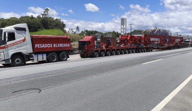 O comboio partiu pela manhã de Blumenau, no km 51 da BR-470, com destino ao km 117 da BR-101, em Itajaí, no sentido Sul. Durante o deslocamento, a operação provocou bloqueios temporários e impactou o fluxo de veículos.