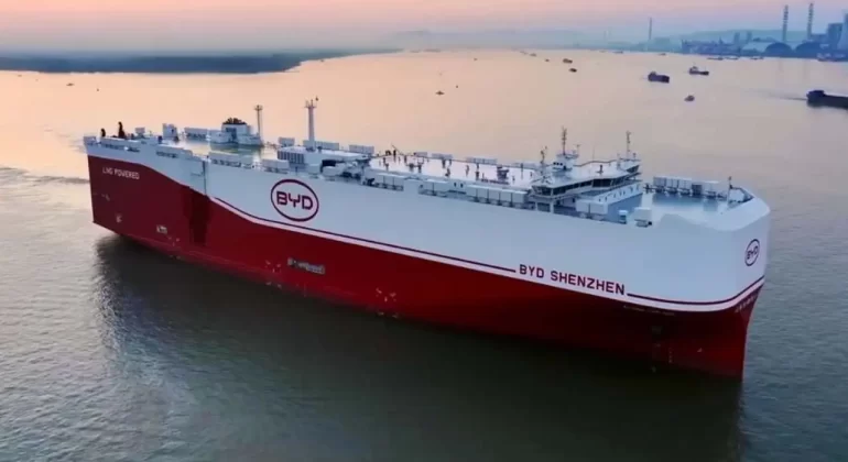 Maior navio automotivo do mundo inicia viagem ao Brasil pela BYD