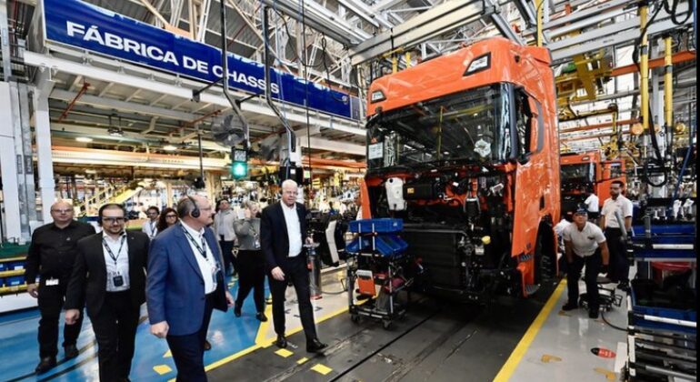 “Aqui está o exemplo de Nova Indústria Brasil (NIB)”, afirmou Alckmin ao visitar duas fábricas da empresa — uma de motores e outra de chassis.  A planta da Scania em São Bernardo passará a produzir chassis para ônibus elétricos a partir de março de 2025. A fábrica do Brasil será a terceira unidade global da montadora a produzir veículos elétricos.