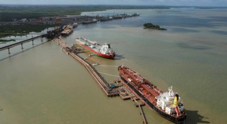 Granel Líquido – Derivados de Petróleo (entreposto): As operações de transferência entre navios (ship-to-ship) movimentaram 316 mil toneladas, desempenho 50% acima do planejado e 333% superior ao registrado em maio de 2024;