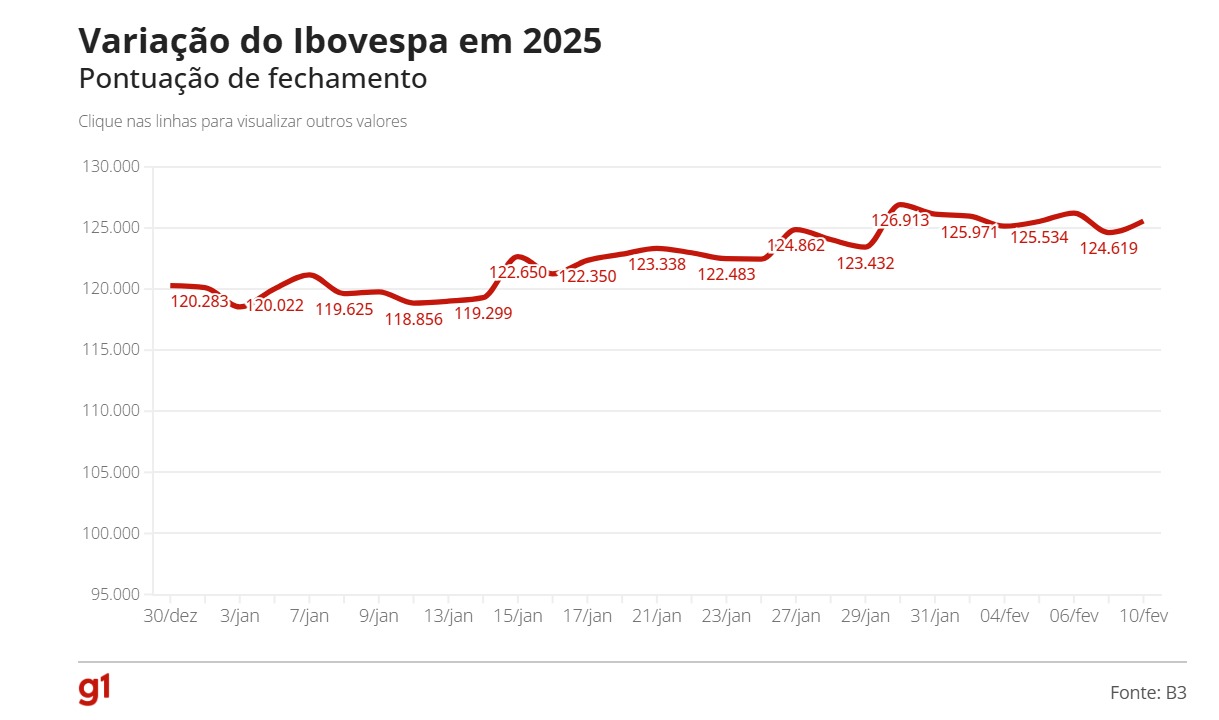 No mesmo horário, o Ibovespa, principal índice do mercado acionário brasileiro, apresentava alta de 0,29%, alcançando 123.985,39 pontos.