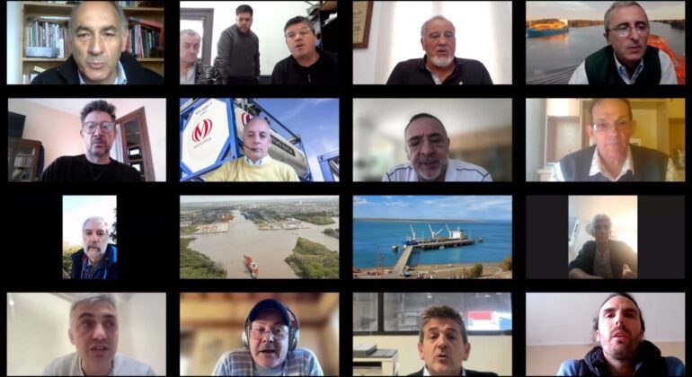 Nesse contexto, foi realizado um encontro virtual com a participação do presidente do Consórcio de Gestão do Porto La Plata, José María Lojo; do coordenador da Unidade Executora Portuária de Santa Cruz (UNEPOSC), Walter Uribe; do administrador do Porto Punta Quilla, Ricardo Rodríguez; dos diretores da TECNOMyL S.A., Aníbal e Pablo Mocchi; e do importador Paulino Rossi.