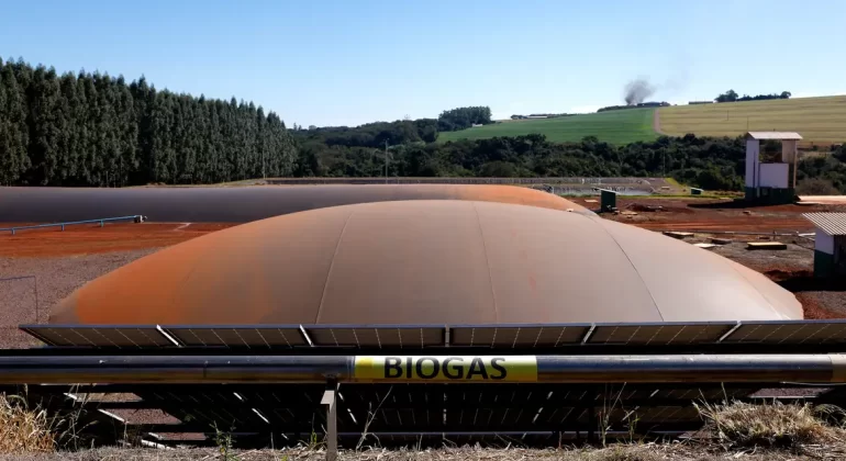 Dentro do lado brasileiro da usina hidrelétrica de Itaipu, em Foz do Iguaçu, no Paraná, na fronteira com o Paraguai, funciona uma usina de biogás e biometano. O local, preparado para transformar resíduos orgânicos em energia limpa, já recebeu a visita de carretas da Receita Federal com produtos aprendidos, como feijão e milho.