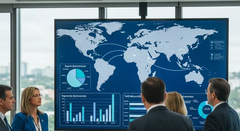 O painel disponibiliza informações detalhadas sobre países compradores, exportações do Brasil, distribuição regional das vendas externas, além de tarifas aplicadas e do cronograma de redução tarifária previsto no acordo entre o Mercosul e a União Europeia.