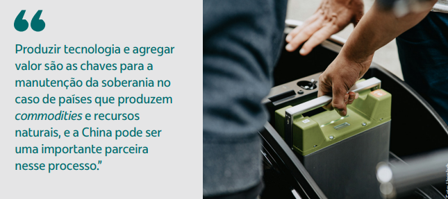Nesse contexto de disputas geoeconômicas, vem crescendo a importância da América do Sul para as cadeias de valor lideradas por empresas chinesas de tecnologia, tendo em vista que a região é detentora de recursos como lítio, cobre, níquel-cobalto, terras raras e grafite. Alguns exemplos incluem a região do Triângulo do Lítio, localizado em partes da Argentina, do Chile e da Bolívia, que concentra cerca de 55% dos recursos globais conhecidos, o cinturão Andino do Cobre, entre Chile, Peru e Equador, com aproximadamente 40% da produção mundial do mineral, além de projetos emergentes em vários minerais, como níquel, cobalto, grafite e terras raras, no Brasil e em outros mercados.