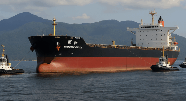 O Shandong Xin Ze, de propriedade da Shandong Shipping Corporation, transportava uma carga de fertilizantes e apresentou falha de máquinas no domingo (14), perdendo propulsão enquanto manobrava para entrar no porto.