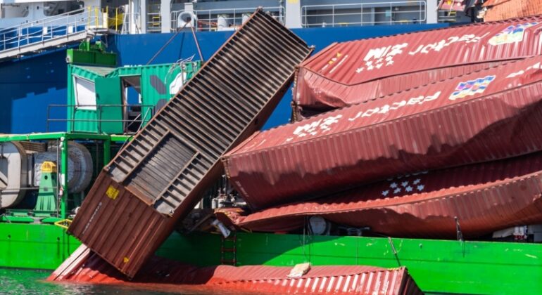 O Porto de Long Beach conclui a recuperação de 95 contêineres que caíram ao mar do navio “Mississippi”