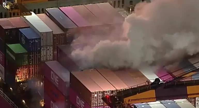 Incêndio em Navio Porta-Contêineres no Porto de Los Angeles Mobiliza Mais de 100 Bombeiros