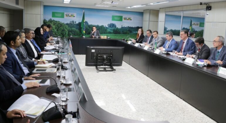 O ministro da Agricultura e Pecuária, Carlos Fávaro, recebeu o ministro da Agricultura e Segurança Alimentar da Malásia, Datuk Sabu, e sua comitiva para dialogar sobre a ampliação das relações comerciais voltadas para o agronegócio. O encontro ocorreu nesta terça-feira (20), na sede do Ministério da Agricultura e Pecuária (Mapa), em Brasília (DF).