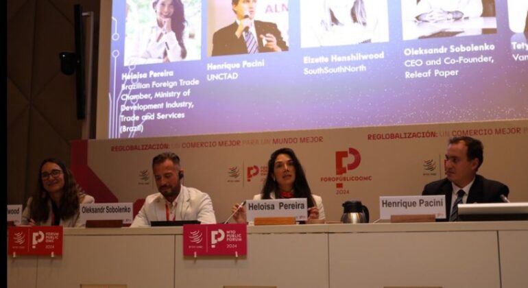 A subsecretária de Articulação em Temas Comerciais da Secretaria Executiva da Camex, Heloísa Pereira, participou, nesta quinta-feira (12), do debate “Nova Economia do Plástico: Como Tornar a Transição Possível”, parte da programação do Fórum Público da Organização Mundial do Comércio (OMC) – WTO Public Forum.