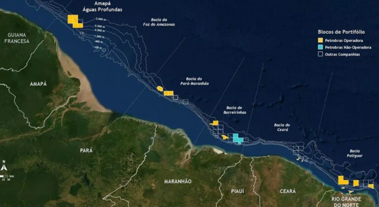 e tem 360 mil quilômetros quadrados. Apesar de mesmo nome, essa nova área não é a que a Petrobras busca autorização para iniciar pesquisas de petróleo e gás.