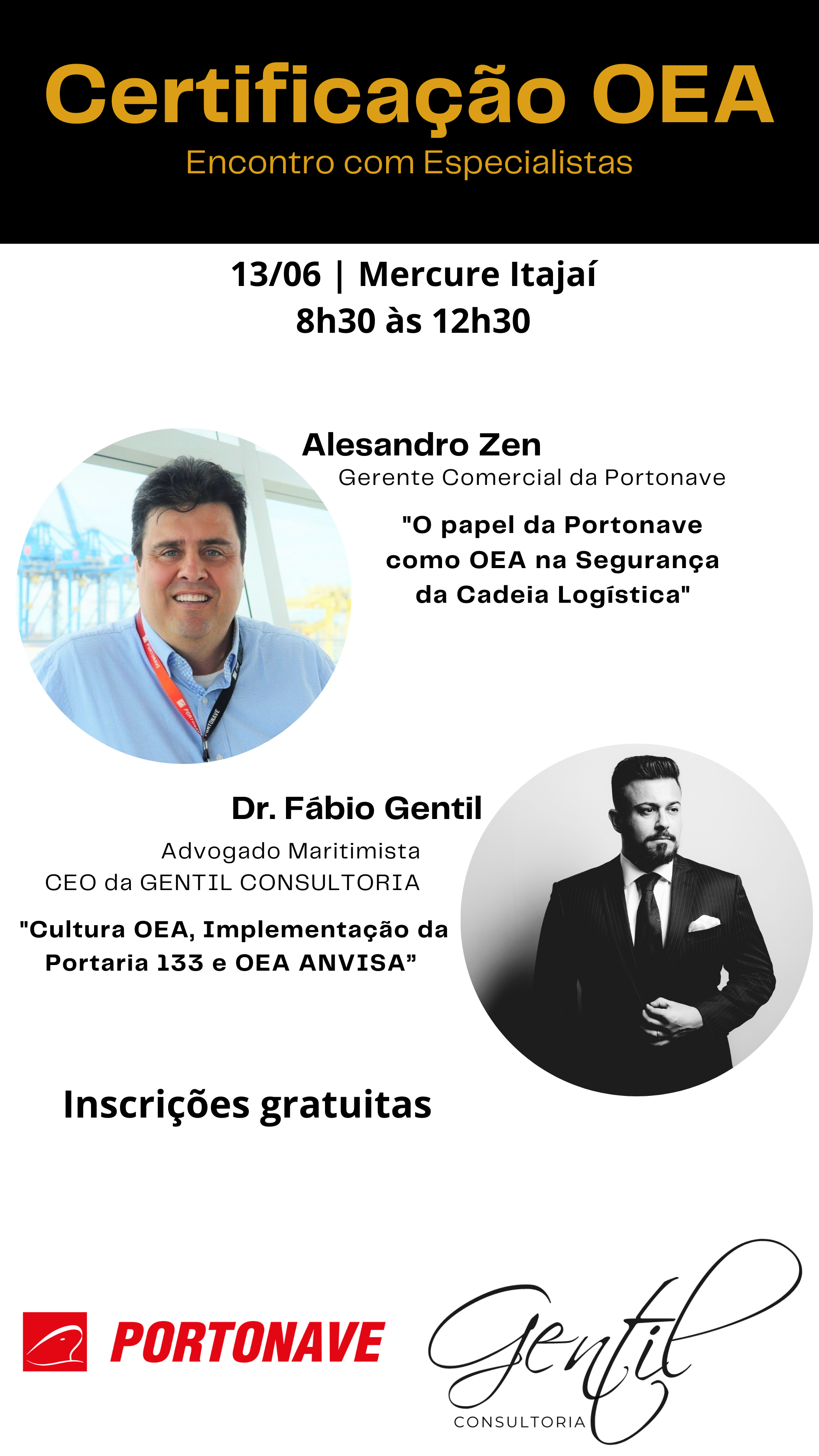 Este será um tema abordado pelo Dr. Fábio Gentil, CEO da Gentil Consultoria, ao falar da “Cultura de OEA, Implementação da Portaria 133 e OEA ANVISA” que atentará para importância de uma cultura de forte de Segurança Internacional.