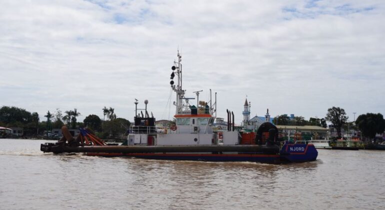 A dragagem de manutenção segue sendo executada pela empresa Van Oord, que atua com a draga Njord nas atividades de rotina e utiliza dragas de grande porte por sucção em campanhas específicas de aprofundamento do canal.