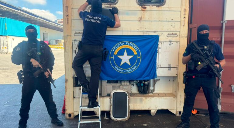 O contêiner tinha origem em Cartagena, na Colômbia, e chegou ao Brasil sem carga declarada. A condição de vazio levantou suspeitas e indicou que o entorpecente não foi retirado no destino final.