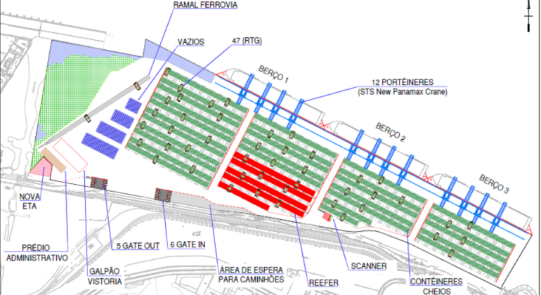 Além da área terrestre, houve ampliação do trecho aquaviário, que passou de 355,2 km² para 367,2 km². Com isso, a área total sob utilização do porto saltou de 383,8 km² para 401 km².